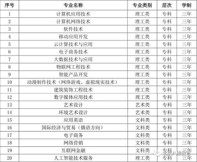 专业专业分为信息工程、信息技术、信息设计、建筑、语言、营销六大类。